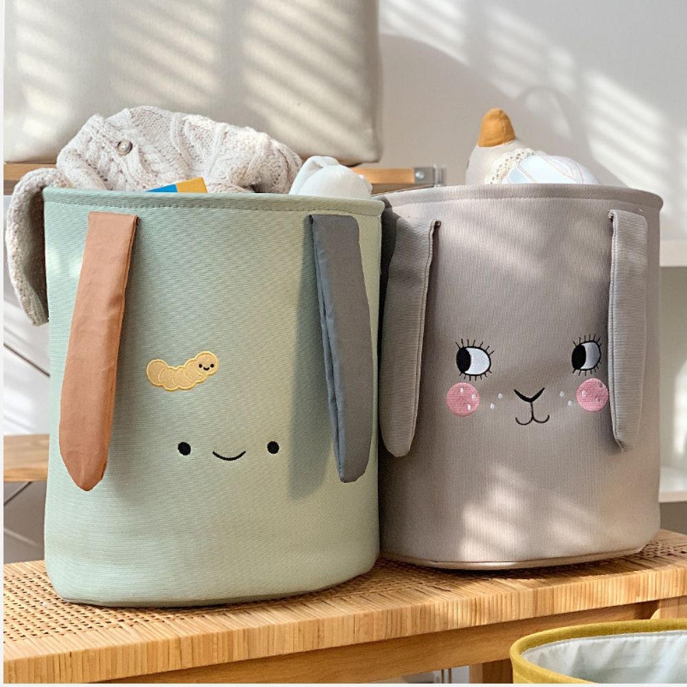 Maak opruimen leuk én leerzaam met deze schattige opbergmand! Deze speelse opberger is niet alleen handig voor speelgoed en knuffels, maar ook een vrolijke toevoeging aan elke kinderkamer. Met z’n vriendelijke gezichtje, contrasterende oortjes en een geborduurd rupsje boven zijn ogen brengt hij leven in de ruimte. De zachte kleuren en grappige uitstraling zorgen ervoor dat kinderen met plezier hun spulletjes opruimen. Gemaakt van stevig katoen canvas en voorzien van comfortabele handgrepen, is deze mand ook gemakkelijk te verplaatsen – ideaal voor ouders die orde willen met een glimlach.