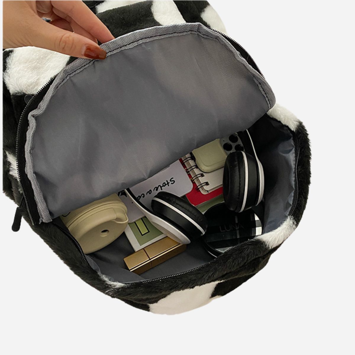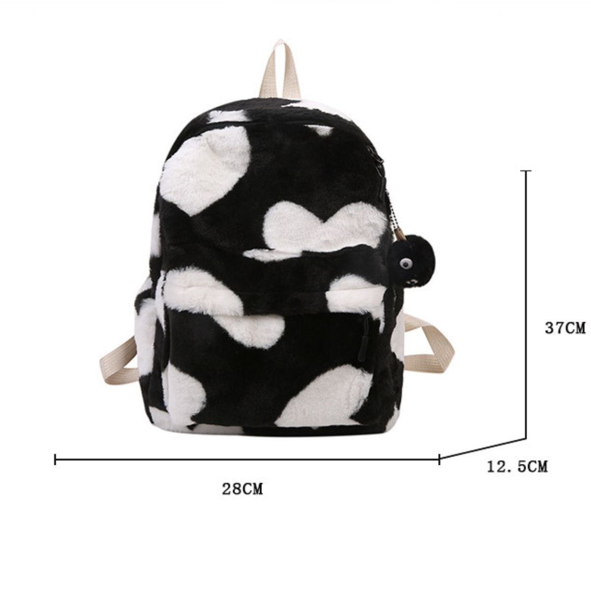 Deze opvallende pluche rugzak combineert zachtheid met een stoer zwart-wit design vol hartjes. Perfect voor kleine avonturiers die net dat beetje extra stijl willen uitstralen! De rugzak heeft een comfortabel formaat, een ruim hoofdvak en een handig voorvak met rits – ideaal voor schoolspulletjes, snacks of speelgoed. De zachte stof maakt hem heerlijk om te dragen én om te knuffelen.