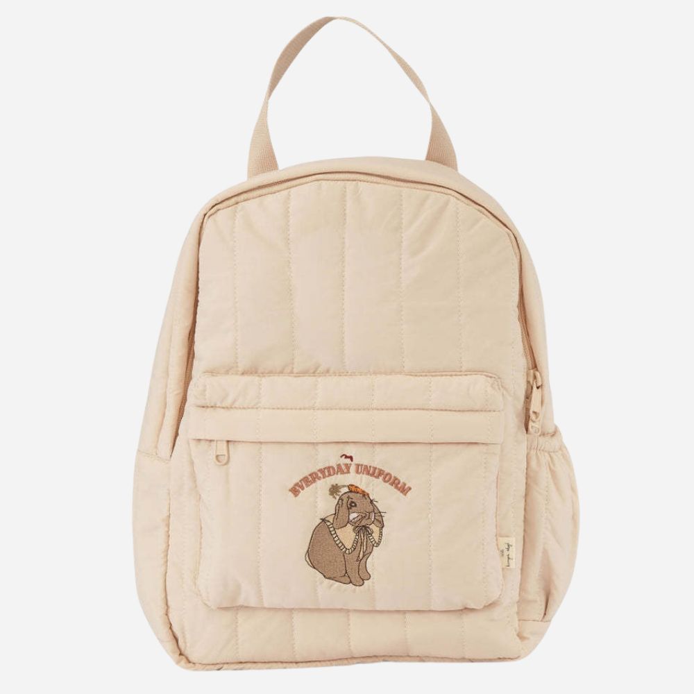 Een rugzak met een knipoog! Deze beige tas toont een relaxt konijn met de tekst “Everyday Uniform” – perfect voor kinderen (of ouders) die elke dag met een glimlach willen starten. Praktisch én grappig in één stijlvolle tas.