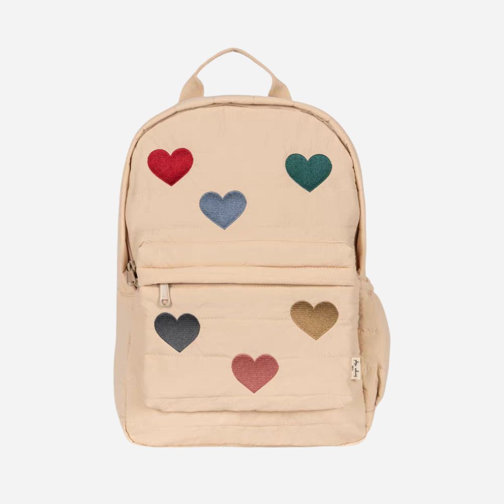 Met deze rugzak draag je je hart letterlijk op je rug! “Rainbow Hearts” combineert een zachte crème ondergrond met kleurrijke, geborduurde hartjes in verschillende tinten – speels, vrolijk en vol liefde.