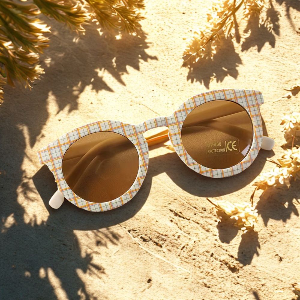 Zacht, lief en kleurrijk! Deze pastel geruite zonnebril combineert klassieke charme met moderne flair. Perfect voor de schattigste zomerdagen!