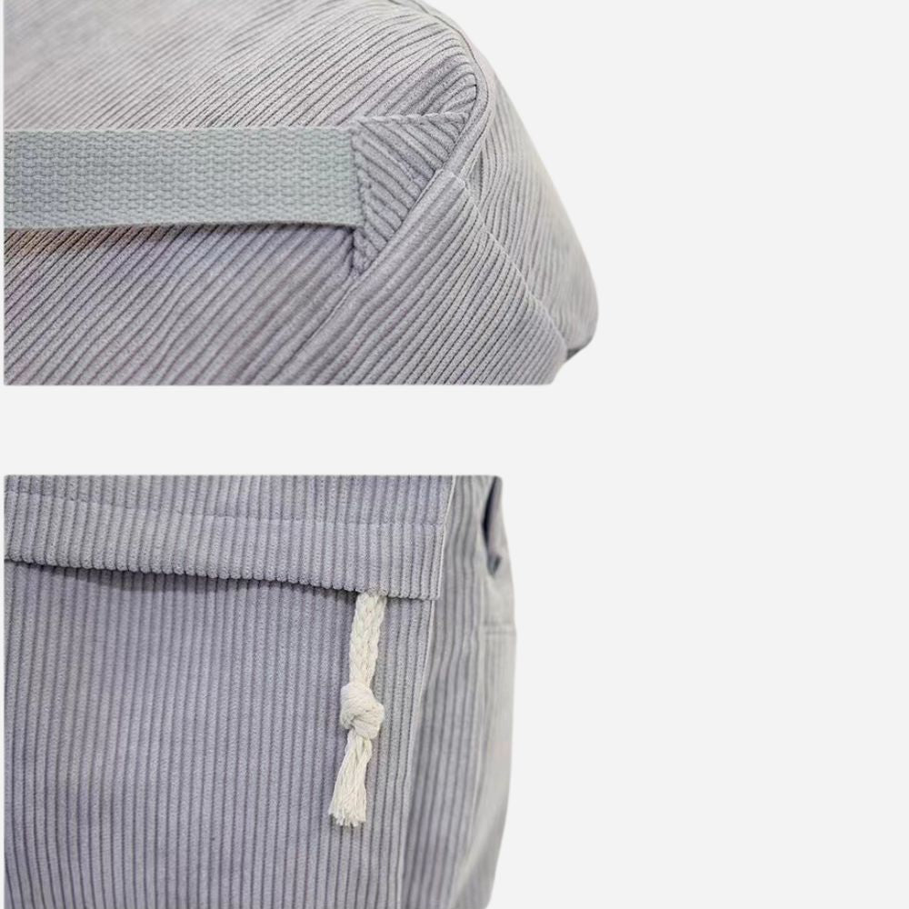 Onze ribcord rugzakken combineren stijlvolle eenvoud met praktisch gemak. Gemaakt van zachte ribcord stof en afgewerkt met speelse witte trekkoorden, zijn deze tassen perfect voor dagelijks gebruik.