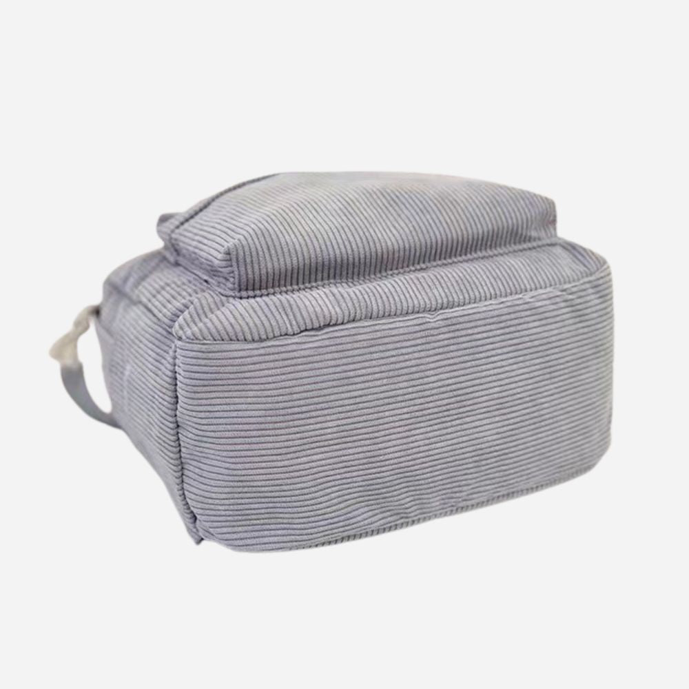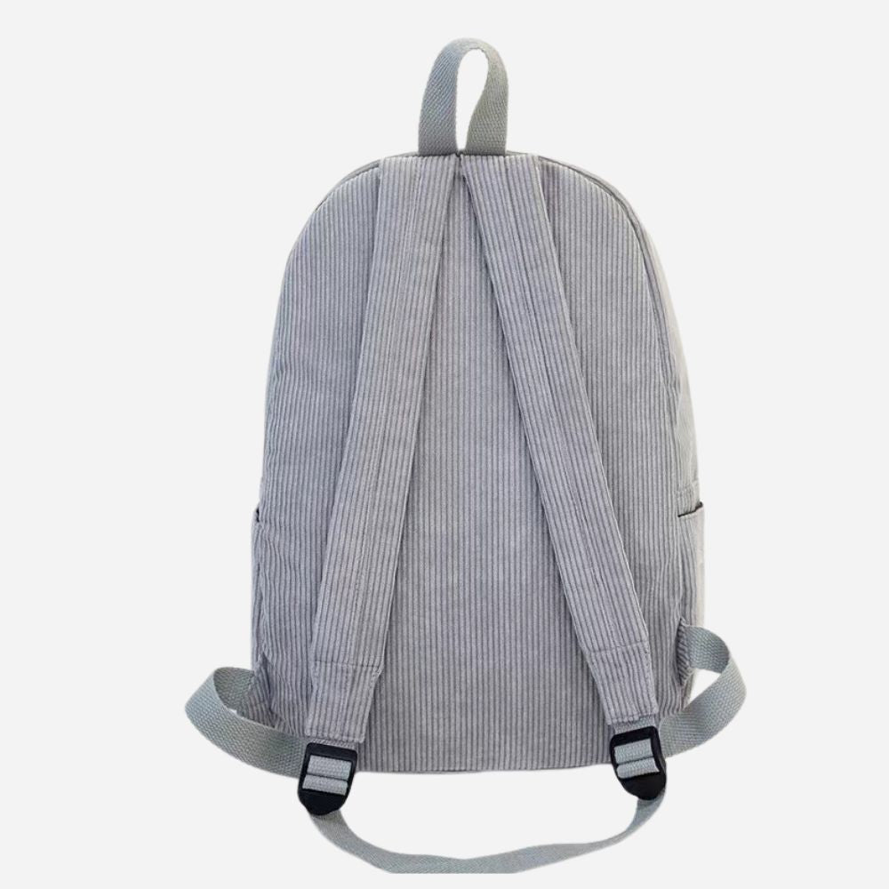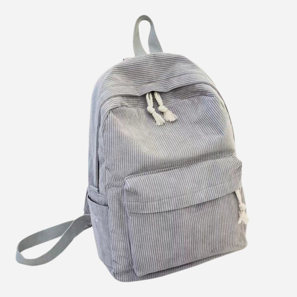Deze grijze ribcord rugzak biedt een minimalistische en stijlvolle look, geschikt voor werk en vrije tijd.